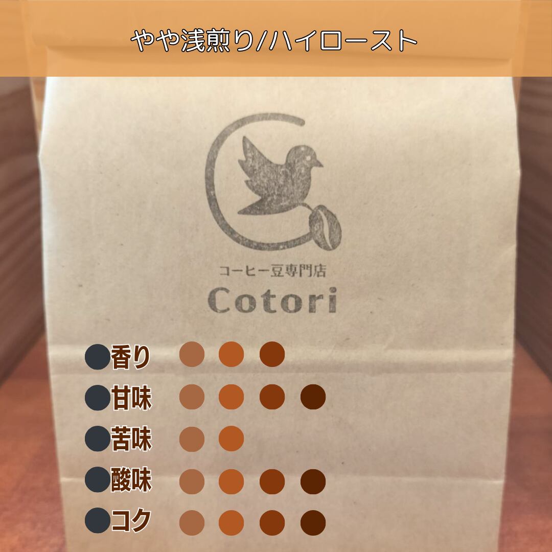 優しい柑橘系の酸味に、ブラウンシュガーのような甘み。やや浅煎りでもしっかりとした飲みごたえと、ほのかなチョコレートの余韻。